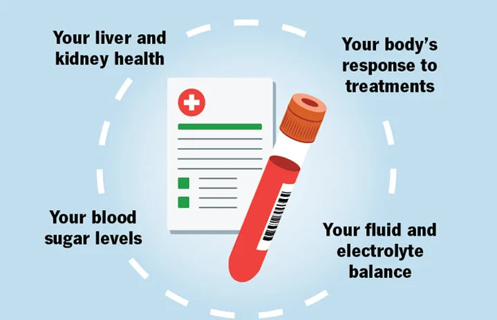 - Measures cholesterol, blood sugar, thyroid, liver, and kidney function